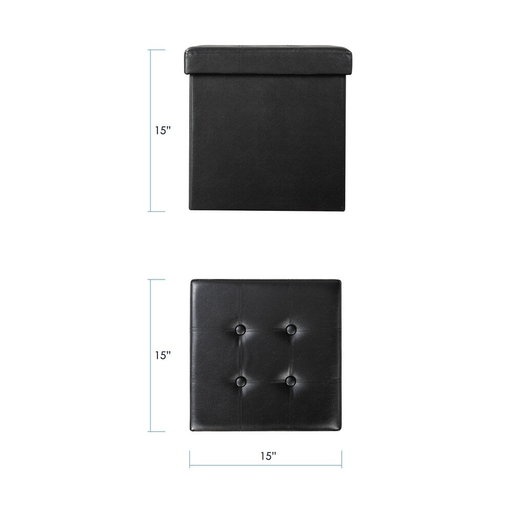 15" Button Tufted Faux Leather Collapsible Storage Ottoman